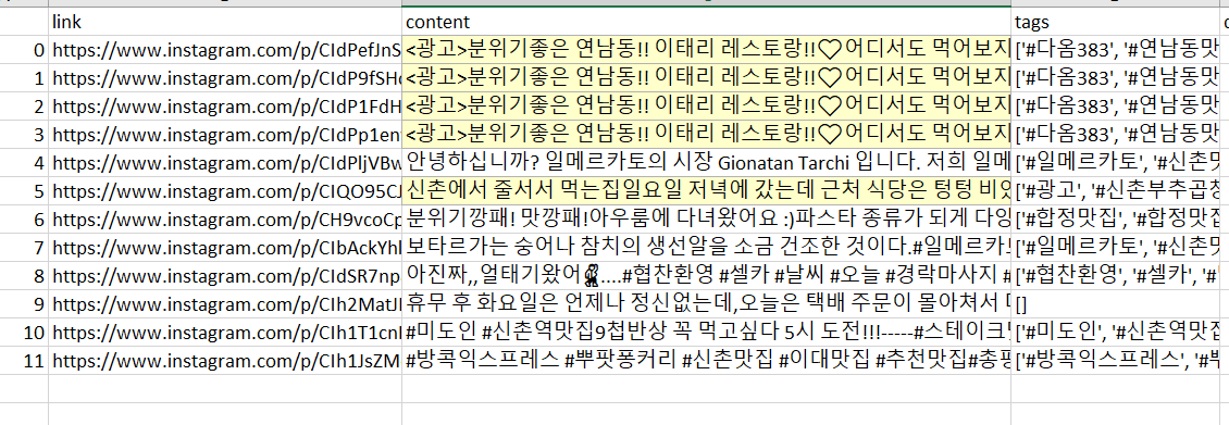 인스타그램 해시태그 크롤링 및 분석 - 2