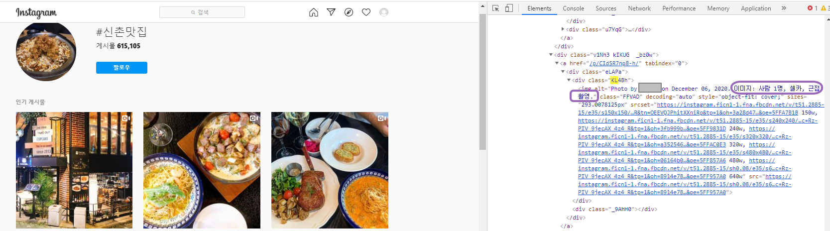 지난 번 내용과 이어서 해시태그와 좋아요, 날짜등을 가져오는 함수를 만들어보도록 하겠습니다. SCROLL_PAUSE_TIME = 2.0 post_link = [] while True: pageString = driver.page_source # page_source : 현재 렌..