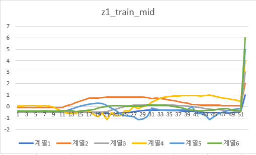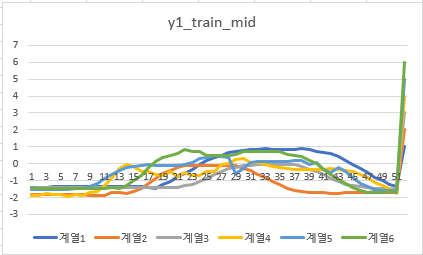 x,y,z의 데이터는 모두 각 행동유형 양상이 차이를 나타내는 구간 즉, 시작하는 구간과 끝나는 구간이 유사하다는 사실을 확인하였다. 행동 클래스별 차이를 보이는 부분은 데이터가 증가하거나 감소하는 부분인데 이 또한 증가하는 정도나 구간이 유사한 행동들이 존재함을 파악할 수 있었다.