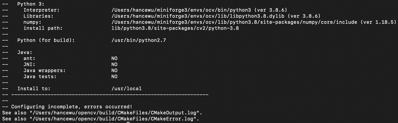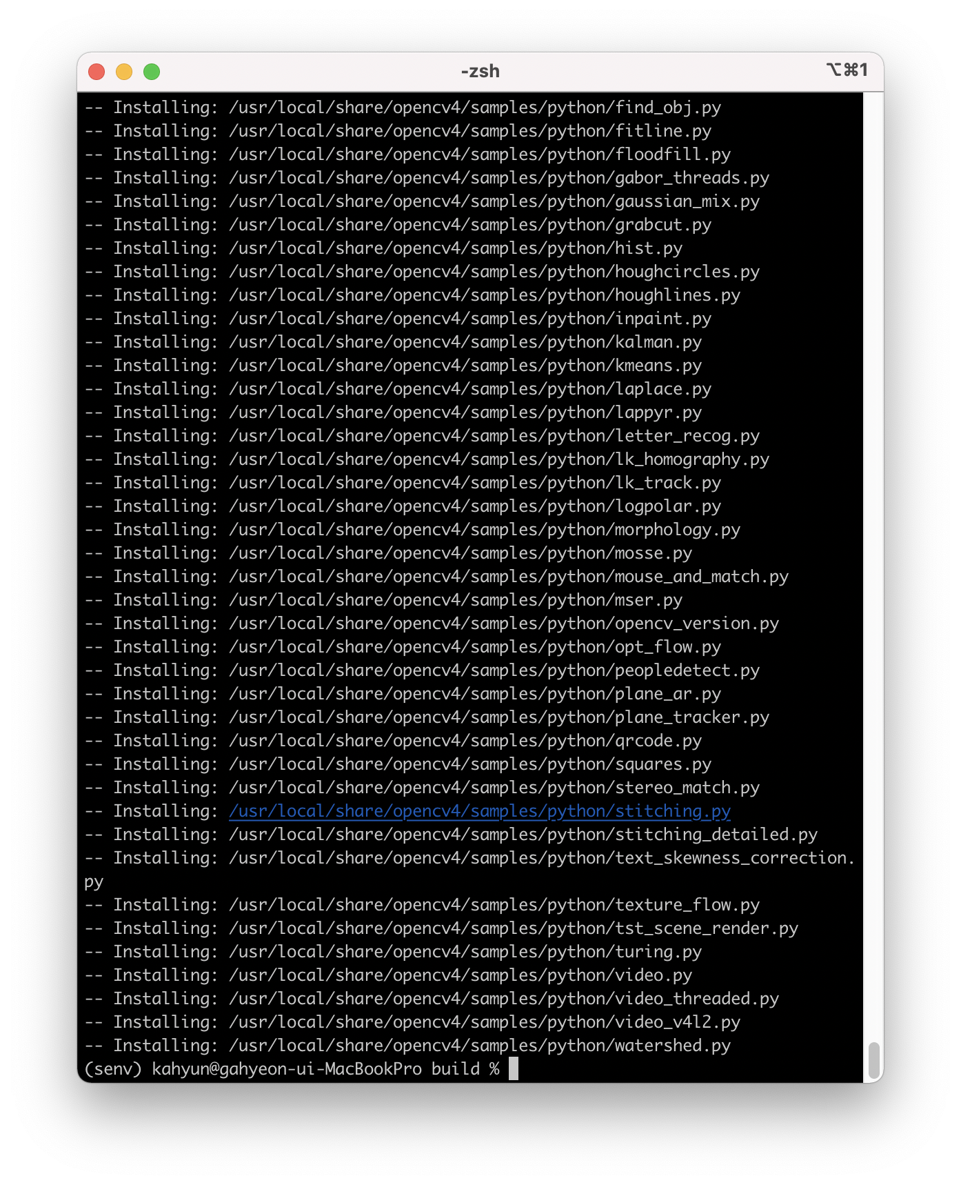 -D OPENCV_EXTRA_MODULES_PATH=/Users/(자기 경로로 수정해서 쓰기)/opencv_contrib-4.5.0/modules \