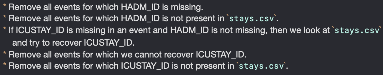 대략 80% 정도의 이벤트만 결과적으로 남게 됨. mimic3benchmark/scripts/more_on_validating_events.md).