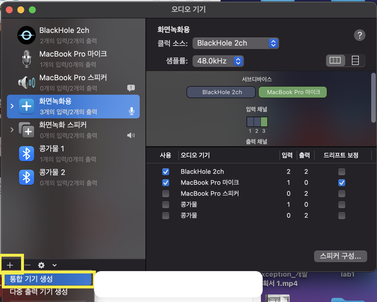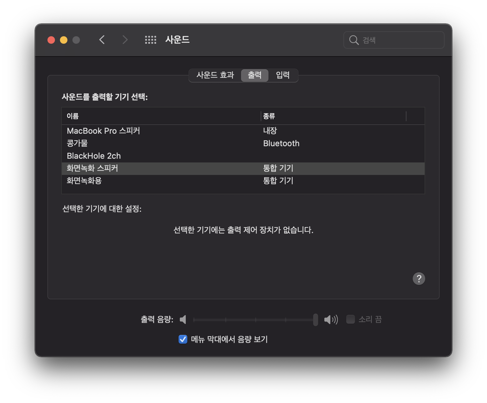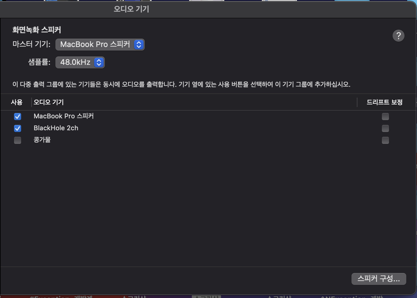- 다중출력기기 > 화면녹화 스피커라 하겠다.