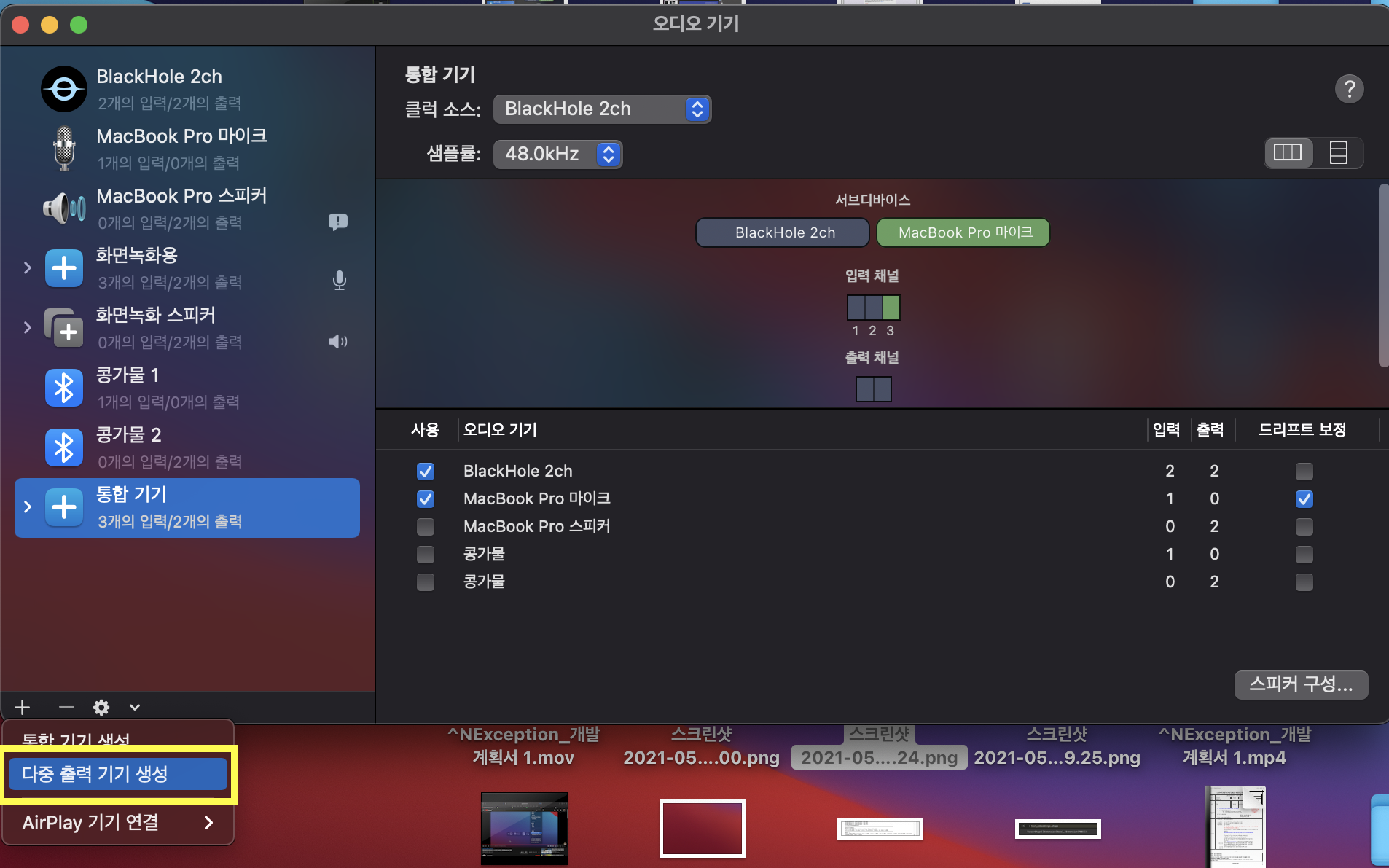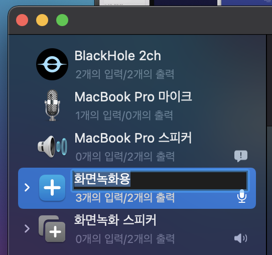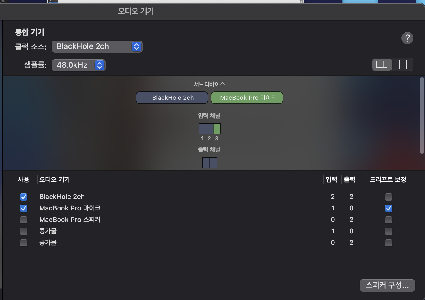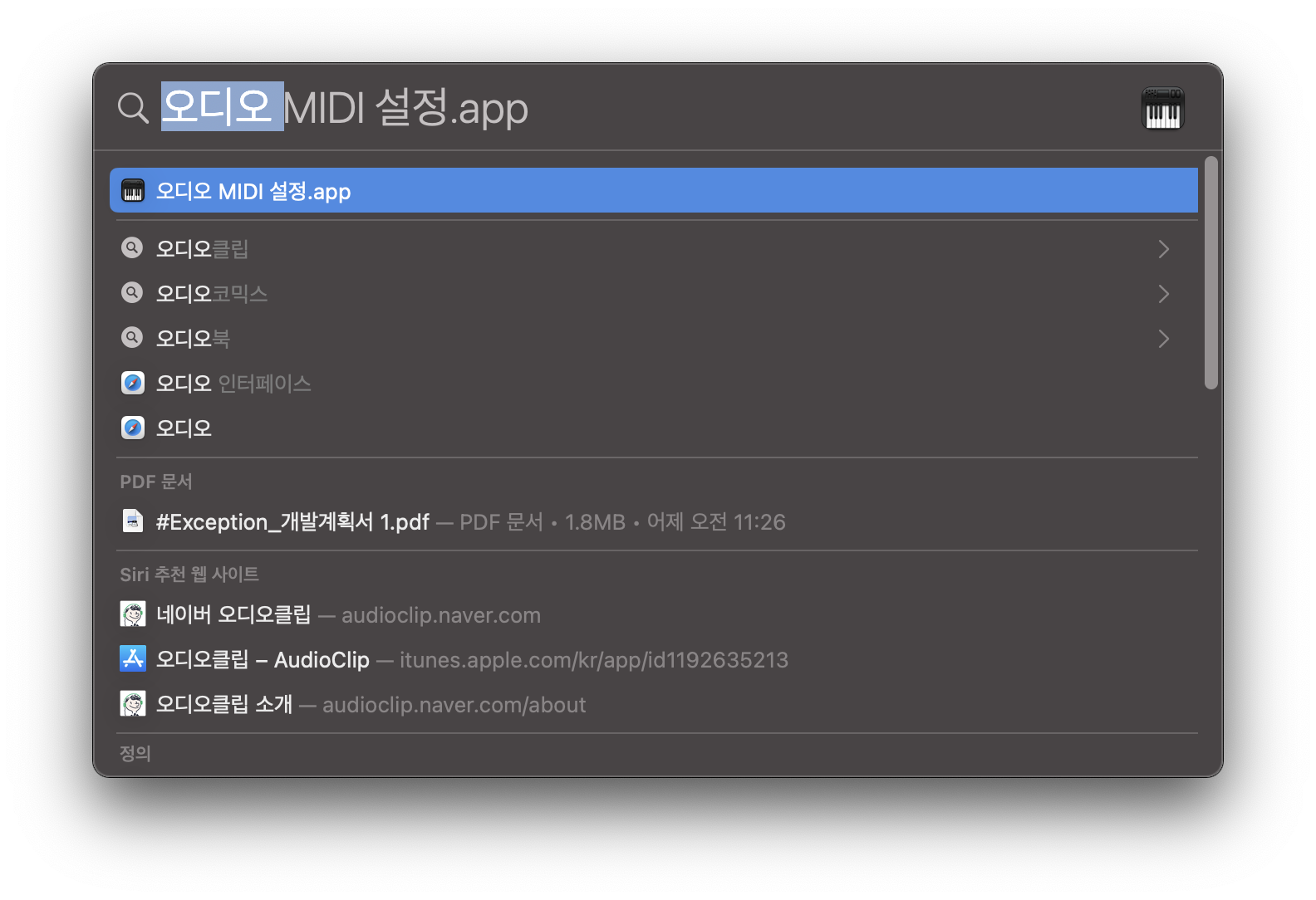 설치가 완료되면 cmd+ space를 눌러서 오디오 MIDI 설정을 찾는다