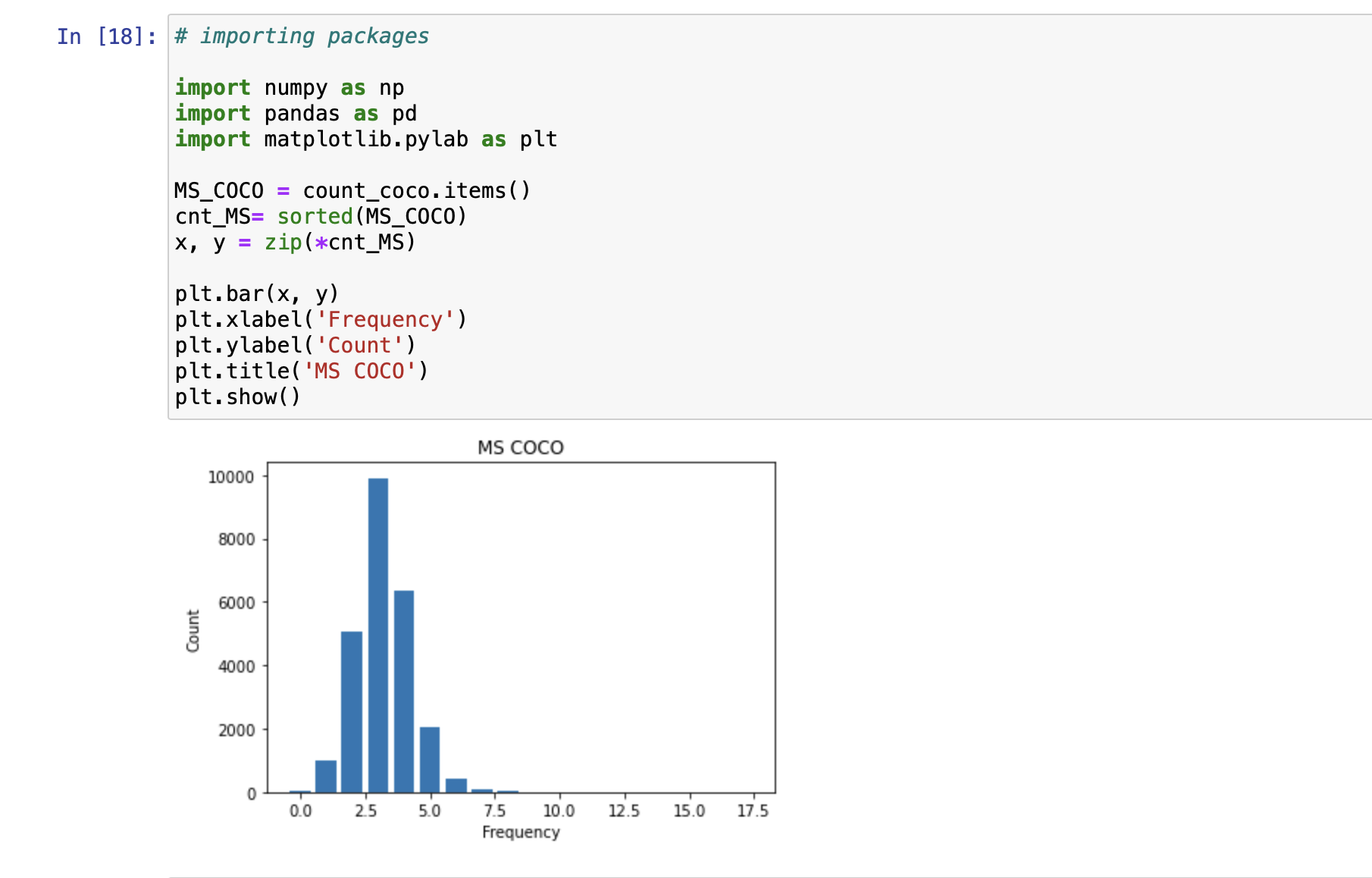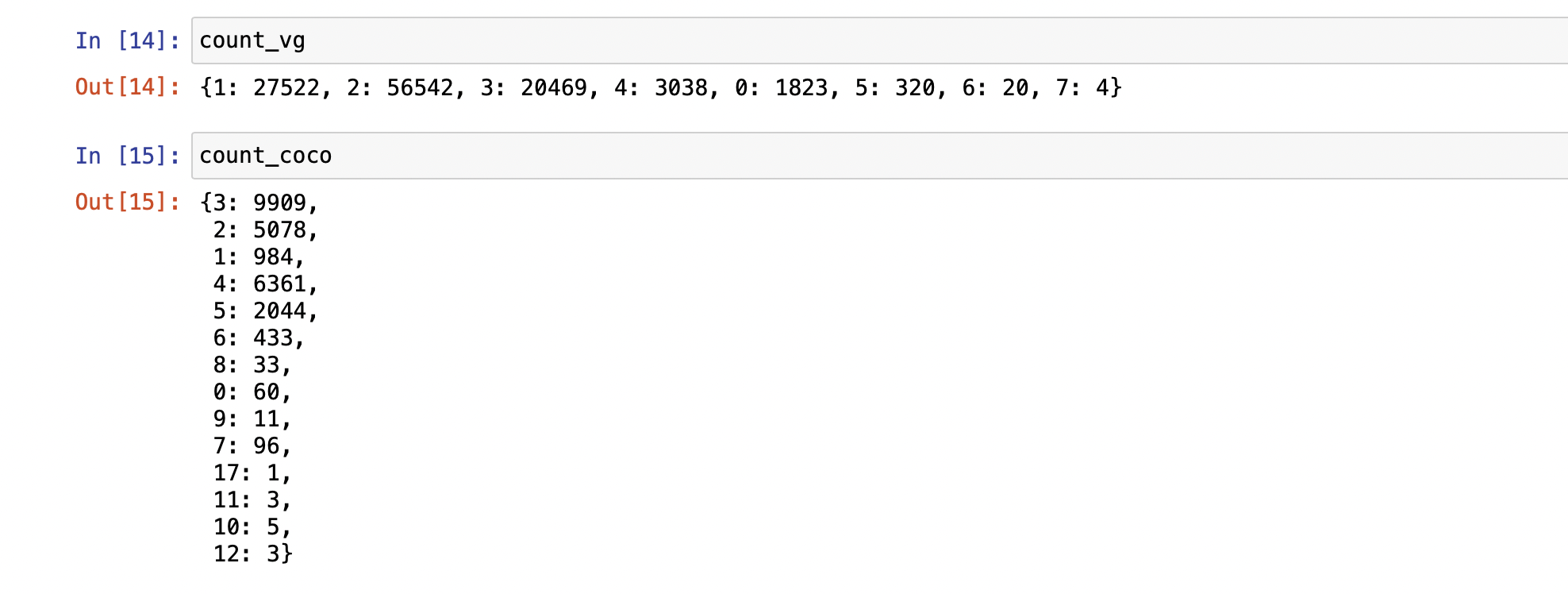 일단 어제까지 한 task는 이미지 내에서 인식된 obhect리스트가 담긴 txt파일을 읽어서 mscoco, vg의 각 문장과 detect 된 object가 얼마나 겹치는 지 세어보는 것이었다.